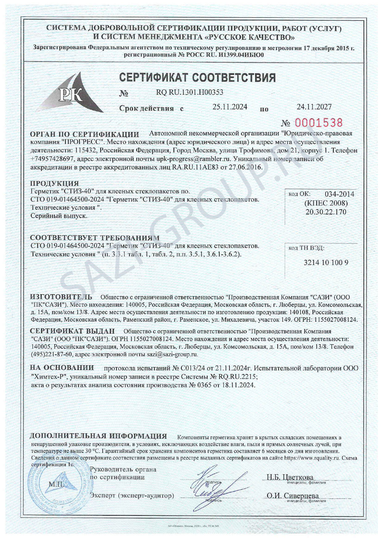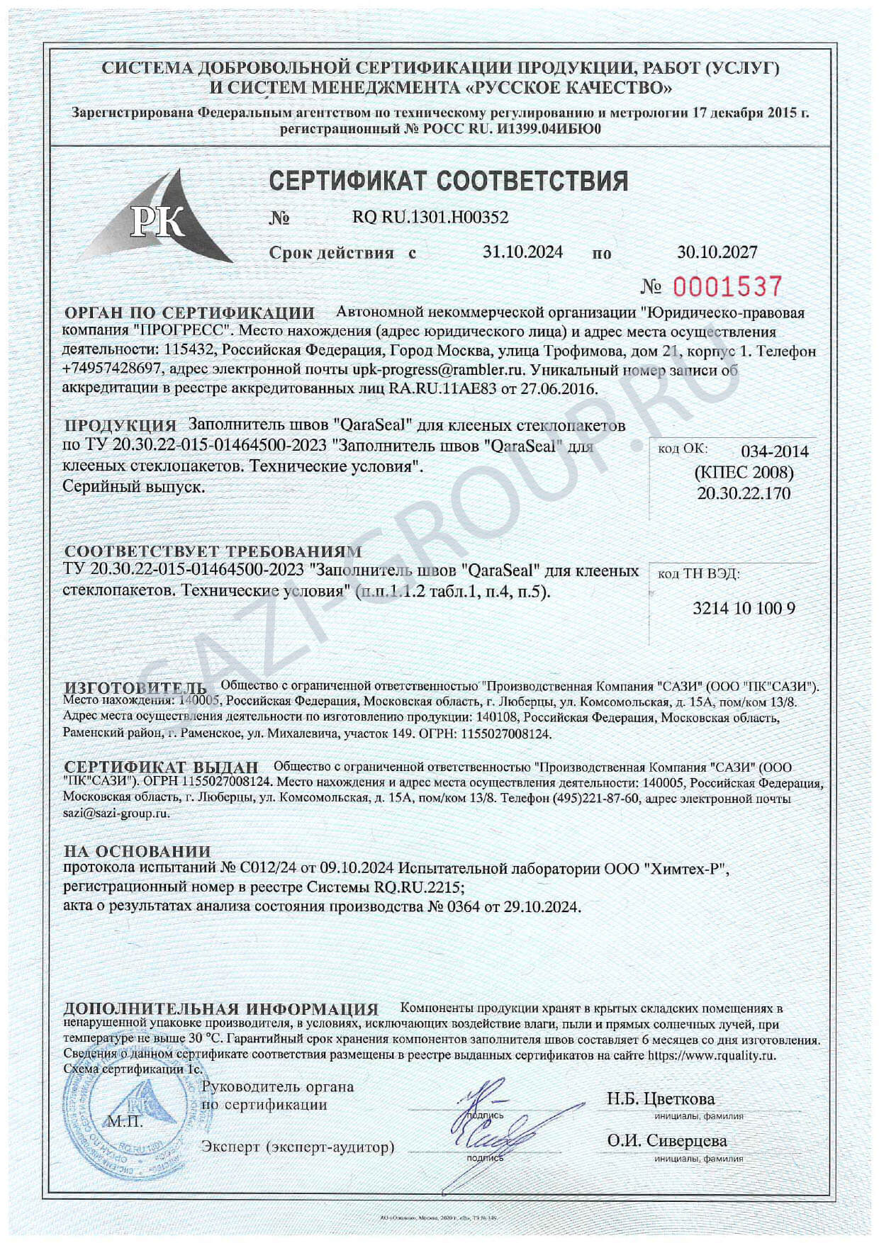 • Сертификат соответствия Сертификат соответствия Сазиласт 24 Снежинка Сертификат соответствия Сазиласт 24 Снежинка